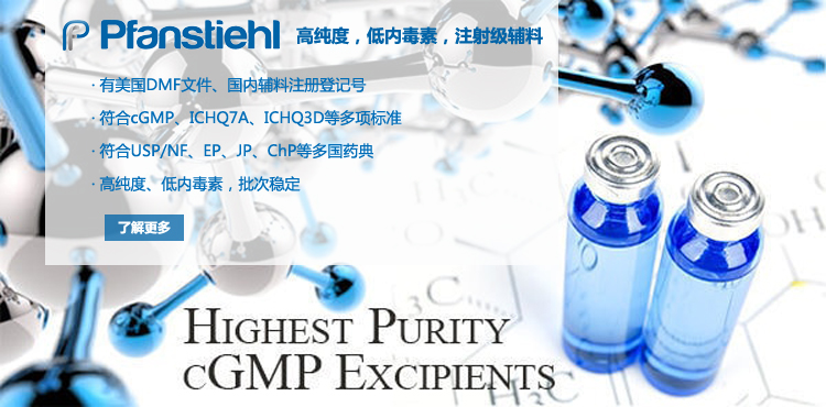 “熱烈祝賀Pfanstiehl的注射級甘氨酸Glycine(G-140)喜獲CDE登記號F20250000403, 這是Pfanstiehl產品獲得的第18個CDE登記號!”甘氨酸在醫藥輔料制劑中應用廣泛,, 可作為緩沖劑,增溶劑,穩定劑等,具有諸多優勢。Pfanstiehl秉承一貫高品質理念,為滿足全球生物制藥行業對于高品質甘氨酸的需求,隆重推出的注射級甘氨酸Glycine (G-140), 具有超高純度,超低內毒素,超低金屬殘留的特點,單獨檢測29種金屬離子,并且新增DNA,RNA,DNA酶,RNA酶和脂肪酶,亞硝酸鹽等多項質量指標的檢測,符合多國藥典規定(USP, EP, BP, JPE, ChP),可用于生物治療性藥物和疫苗的生產。產品信息:· 產品名稱:Glycine, High Purity, Low Endotoxin, Low Metals, USP, EP, BP, JPE, ChP (G-140)· 中文名稱:甘氨酸· 分子式:C2H5NO2· 分子量:75.07 g / mol· CAS號:56-40-6· 產品貨號:G-140產品特點: · 超高純度,超低內毒素,超低微生物含量,超低金屬雜質殘留· 質量指標新增DNA,RNA,DNA酶,RNA酶,脂肪酶和亞硝酸鹽檢測· 符合多國藥典:USP, EP, BP, JPE, ChP· 符合ICH Q3D標準· 符合GMP標準· 已獲DMF和CDE登記號 產品應用:· 緩沖劑· 穩定劑· 增溶劑如果您對Pfanstiehl注射級別Glycine G-140感興趣,歡迎聯系Pfanstiehl 中國區代理商北京西美杰科技有限公司獲得如下詳細的產品概況說明文件和測試樣品。Pfanstiehl Inc.最新產品系列如下,歡迎聯系北京西美杰科技有限公司獲取100g裝免費樣品。北京西美杰科技有限公司為Pfanstiehl中國代理,為客戶提供完善的技術支持與售后服務。歡迎撥打西美杰客服電話400-050-4006或者登陸網站www_xmjsci_com.yzxrpet.com了解更多信息。 更多>西美杰介紹